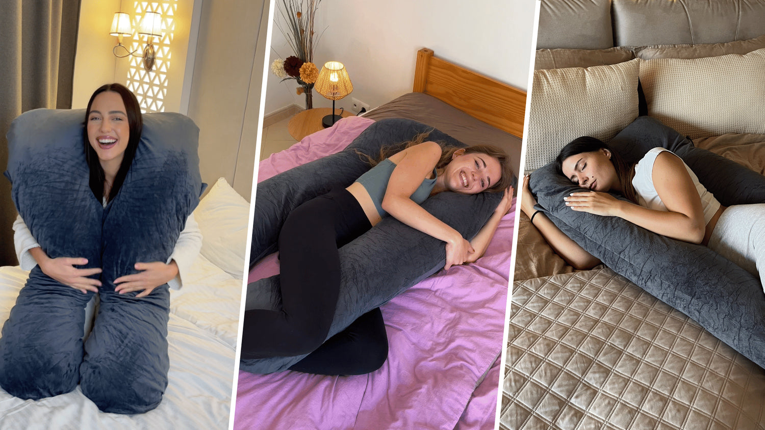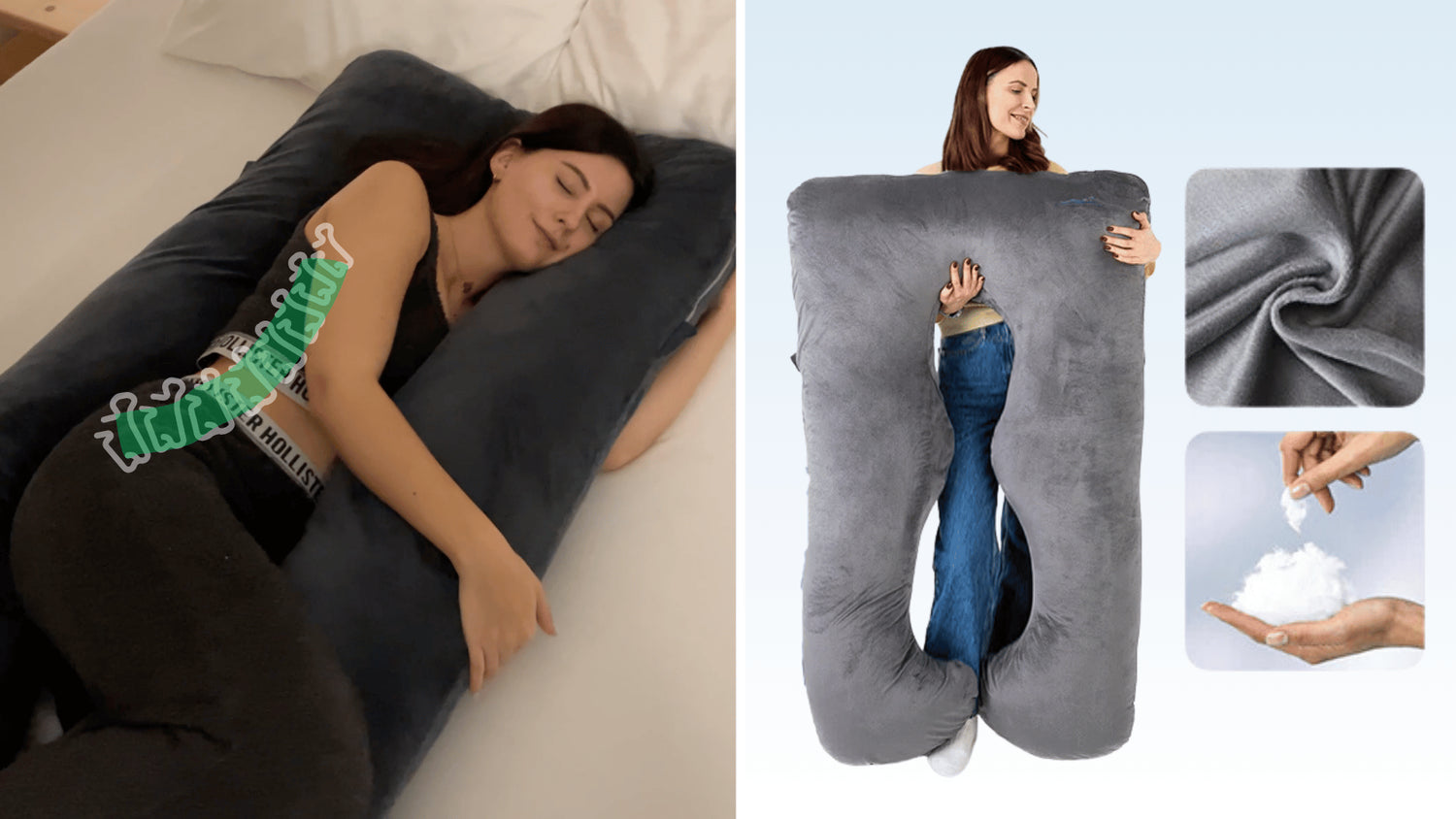 The pillow is designed to gently wrap around your body, almost like a comforting hug.